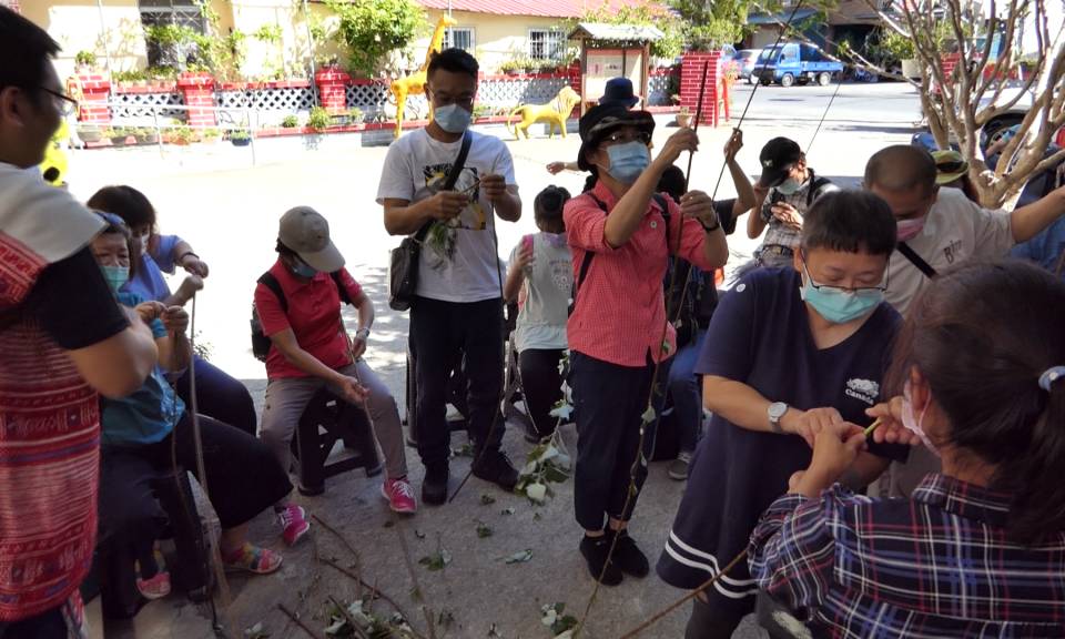 參與走讀見學遊程的民眾,來到噶哈巫族牛眠部落廣場前,在部落居民的指導下,親身體驗苧麻剝絲以及刮麻的工序,了解苧麻變成織線的過程,也因為這樣的體驗遊程,許多民眾是第一次認識到埔里的噶哈巫族。