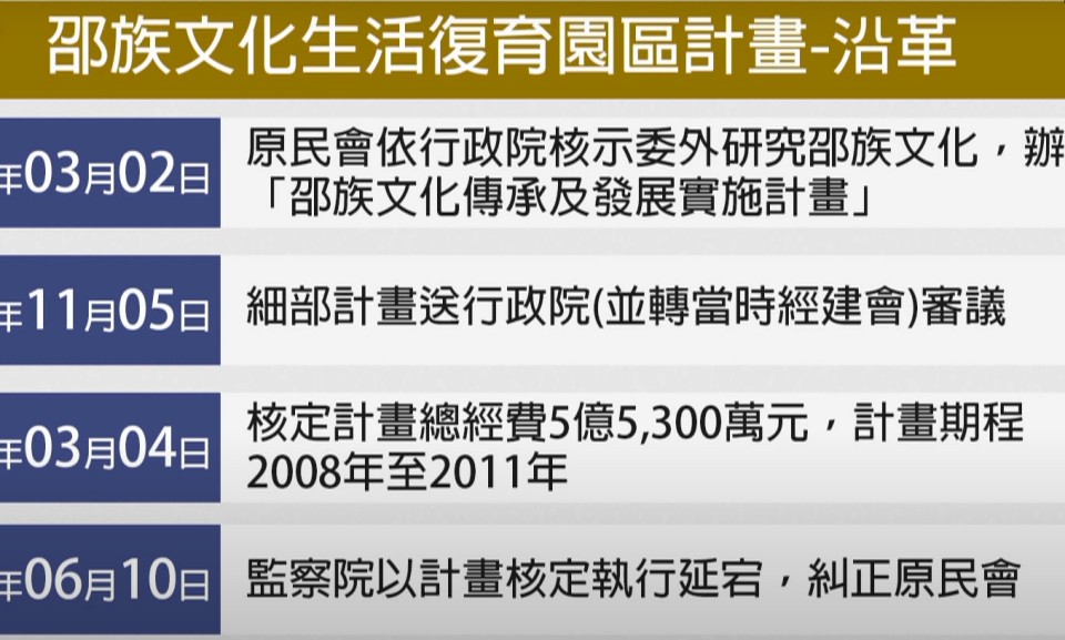 921大地震過後,為了推動家園重建,及邵族文化復振傳承,2006年原民會依行政院核示,辦理邵族文化傳承及發展實施計畫,並且設置邵族文化生活復育園區,雖然兩年後核定計畫總經費來到5億5千3百萬元,不過卻在2008年政黨輪替之後不了了之,到了2013年監察院以計畫核定執行延宕,糾正原民會。