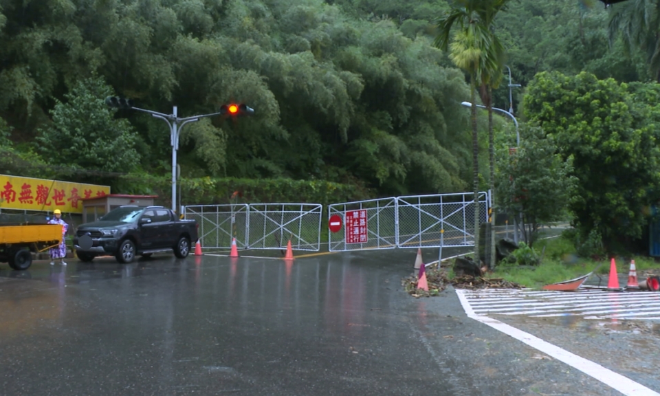 記者 Cemedas Dumalalrath:「這裡是台18線要往阿里山鄉的路段,可以看到差不多在上午八點五十左右,風雨還是非常的強勁,那在34.3公里處、也就是觸口這邊、番路鄉的觸口這邊,可以看到公路局是實施了封閉,封閉時間原本是從前天(24)的下午六點到今天(26)早上八點,但昨天(25)嘉義縣跟嘉義市的雨量、風雨,都是非常地強勁;保險起見,公路局今天(26)一早也是宣布要將開放的時間延後到中午十二點,但仍有可能繼續延後。」
