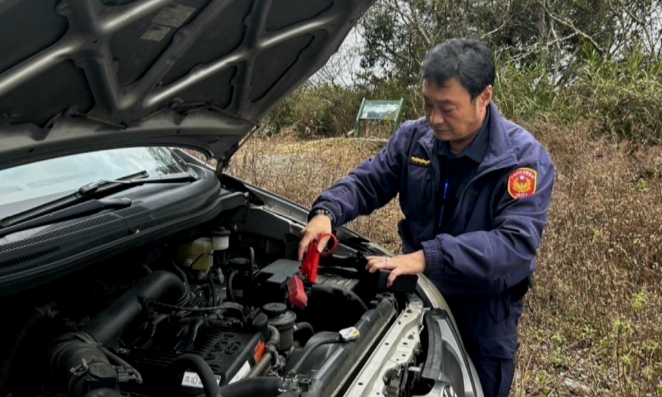 好不容易又發動的車子,警方連連向民眾提醒不要讓車子熄火。這是發生在南橫公路上的交通事故,53歲蔣姓男子月初自駕小客車到埡口欣賞雲海,卻不料返程車輛突然熄火拋錨,男子趕緊通報警方,並在員警反覆操作電瓶接電動作,才終於啟動引擎,解決問題。