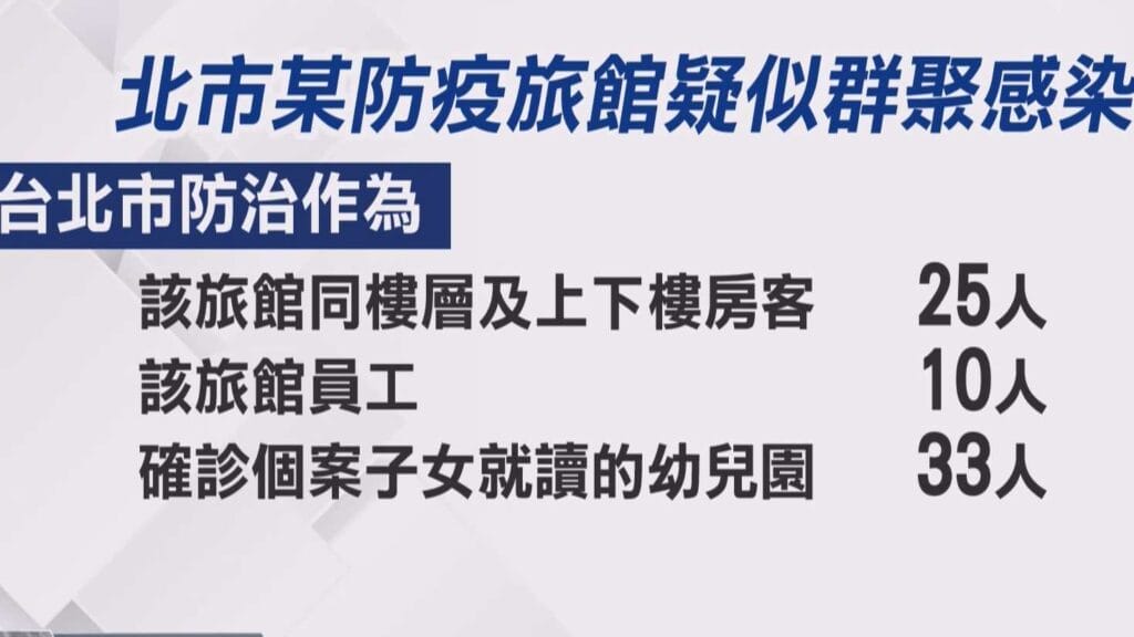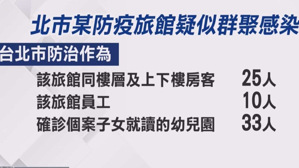 目前旅館該樓層已清空,北市也針對同樓層及上下樓的25名房客、旅館員工10人,和確診個案子女就讀的幼兒園共33名師生進行擴大採檢。但最擔憂的是,案17181檢疫期滿後回家自主健康管理,曾外出接送孩子上下學,是否會把無形病毒帶進社區?仍是未知數。