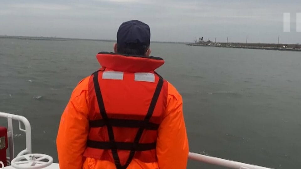 海巡署持續照射海面,仍希望尋獲失聯飛官。(圖/原視新聞網)