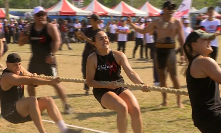 第一組的比賽由來自日本、吐瓦魯,以及地主隊卡那卡那富族選手共同參與。現場可以看到選手們背負著象徵生活中重要物資的負重,以最快速度跑向終點。整個過程相當緊張刺激,這項比賽除了比速度,更考驗選手對傳統技法的掌握與耐力。傳統負重在許多族群中,都象徵著日常生活的智慧與文化傳承。