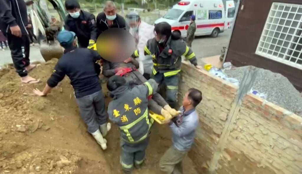 這起事件發生13號傍晚,台東卑南鄉龍過脈社區一名70多歲彭姓工人,當時在處理圍牆工程時,擋土牆上方土石意外坍塌,幾乎快把他整個人給活埋,所幸肩部以上露出土面,可以順利呼吸,沒有造成生命危險。