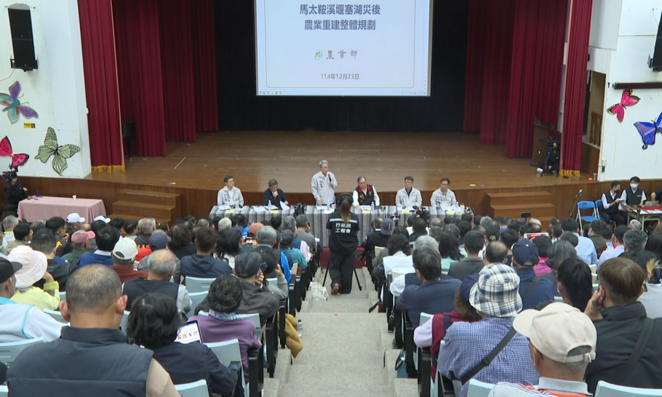 12月23日正好是洪災屆滿3個月,行政院應特別預算主決議來到光復進行說明,目前有關馬太鞍溪疏濬及堰塞湖監測也是重要的關鍵問題,而來到地方召開說明會,聽取大家意見之外,也設立工作站持續解決重建問題。