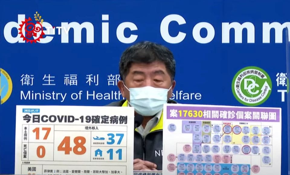 中央流行疫情指揮中心指揮官陳時中說,「1月7號染疫的有增加3位,1月9號染疫的在餐廳西堤內的有8位,在1月7號這3位、1位是員工,這位員工我們現在看到的(案)18000,他是員工,那是1月7號染疫,不過相對的,對於相關的接觸,他的風險是相對的低,因為他在1月13號就採檢陰性後居隔,所以他在採檢陰性後就居隔,到昨天又再被驗出來。」