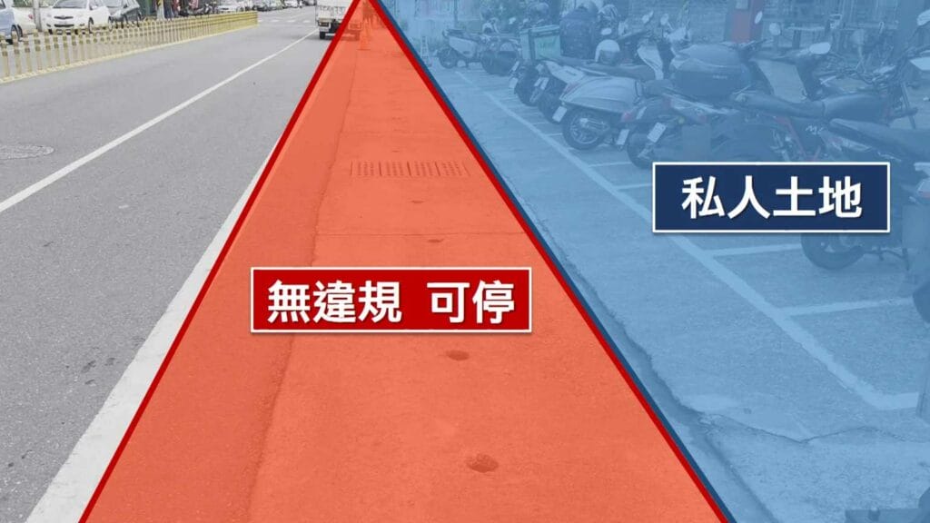 停車格為私人地且在道路外,不違規。(圖/原視新聞網) 若停車格為公有土地,則有規法併排疑慮 (圖/原視新聞網)