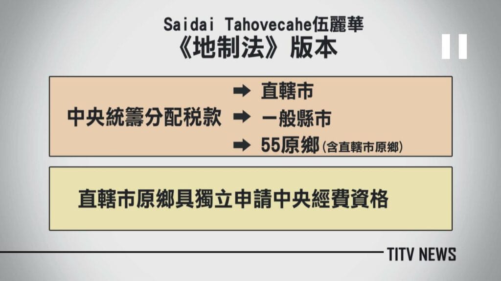 過去高金素梅就有提過,55原鄉組成環境永續之都的概念,不過也有立委將修正地制法,視為跨出原住民族自治的第一步。立委伍麗華提到,民國103年修正地制法後,直轄市的原鄉地區有了自治權限。