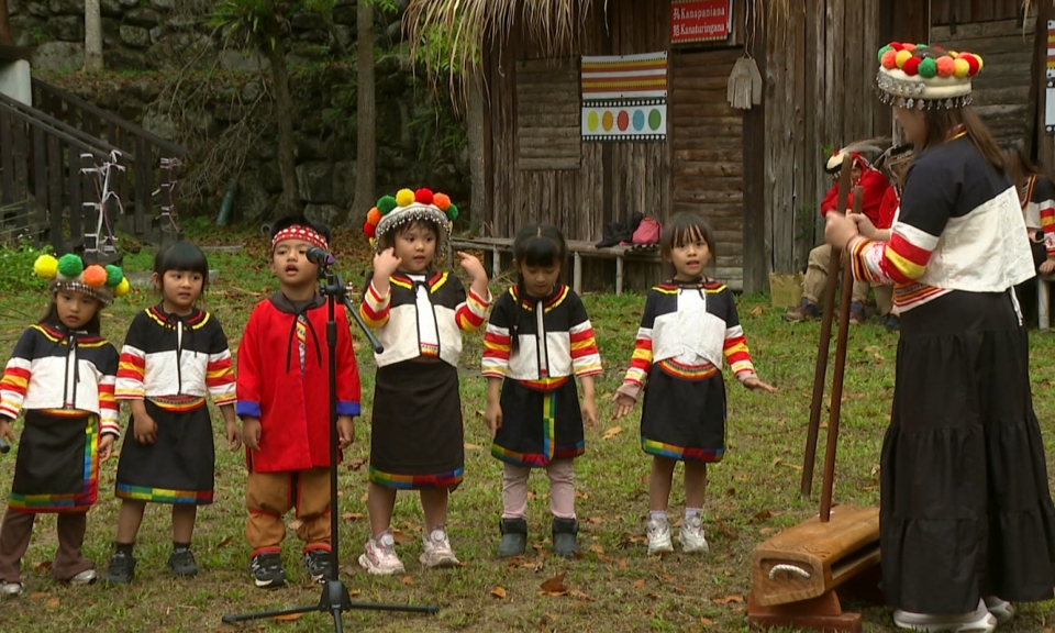 幼兒園孩子齊唱族語歌謠。為延續卡那卡那富傳統文化並傳承漁獵智慧,台灣卡那卡那富族發展協會,辦理河祭活動,透過祭儀與文化展演,不僅青年、耆老參與,也結合學校讓文化幼苗從小扎根。