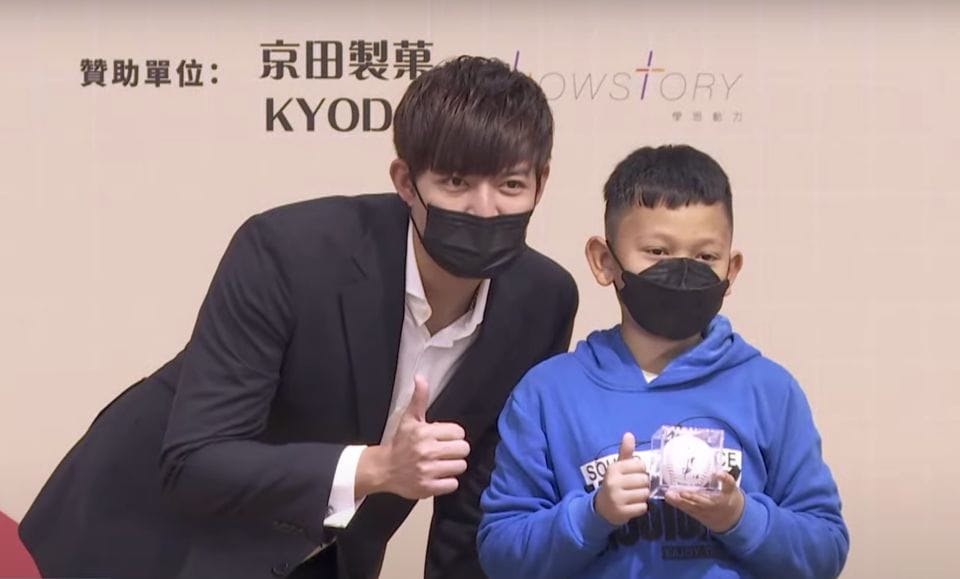 送出一個大大擁抱,眼前這位小朋友小泉,正是阿美族棒球員王維中,透過社福團體資助多年的孩子。兩人首次見面,看得出來小泉相當害羞。