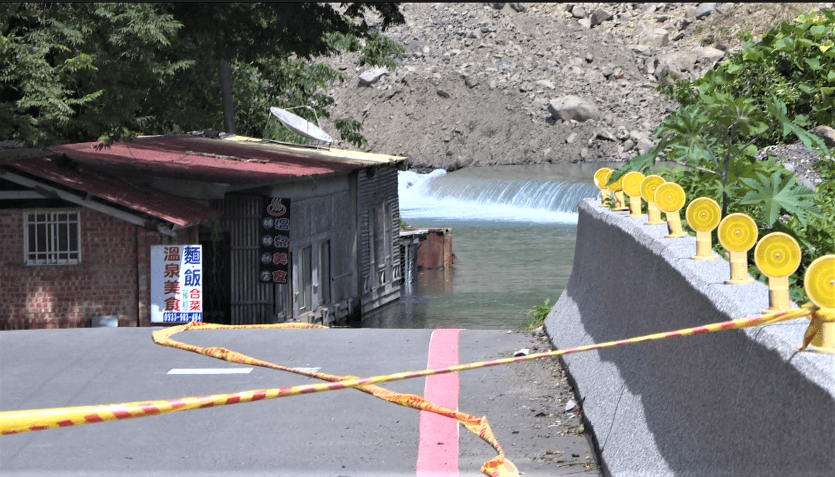原本的道路,如今都已淹在水裡,包括外環道竹60線路面上的4家民宿、商店全數泡湯,住戶已被安置在田埔活動中心收容。不過其實土石崩落並非一朝一夕釀成,當地居民說,這片坍塌地已經長達5年以上,都有落石持續滾落。