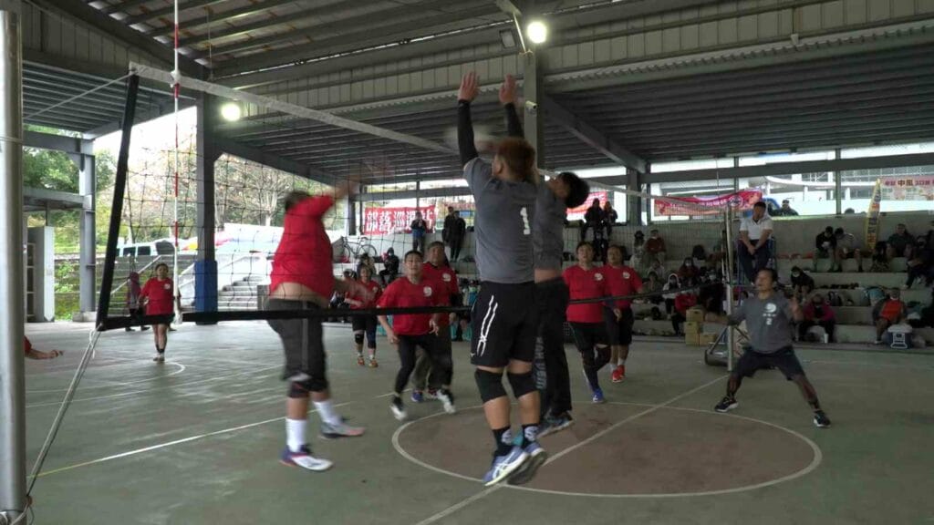 卓溪鄉新村排球賽,卓清村v.s.太平村,相互快攻、封網,讓比賽氣氛添增不少刺激感。(攝/法物嘞、圖/原視新聞網)