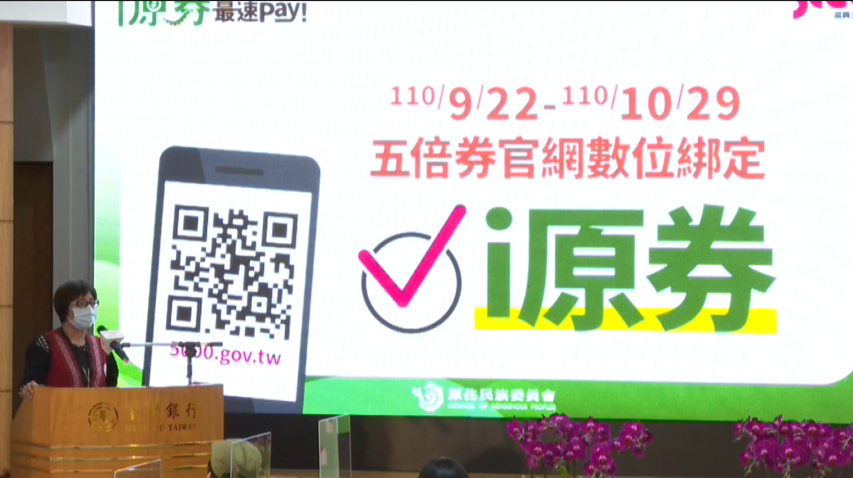 此外,配合「五倍券」振興方案,八大部會也相繼推出加碼券,其中原民會祭出的「i原券」,只要綁定台灣Pay,就能參與「i原券」抽籤,限量十萬份,每周抽獎一次,總共有4次抽獎機會,就有機會獲得一千元的現金回饋。