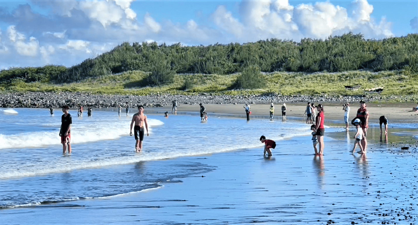 台東都歷海灘,遊客們分別拍照、打卡、戲水或衝浪。當地居民表示,每日遊客量大約300至500人,然而,人潮湧入海灘,讓部落族人非常憂心,有些人會隨意將垃圾丟棄在海灘,或在防風林裡解大小便,因此影響自然生態與台十一線的交通,同時有形成防疫破口的疑慮。
