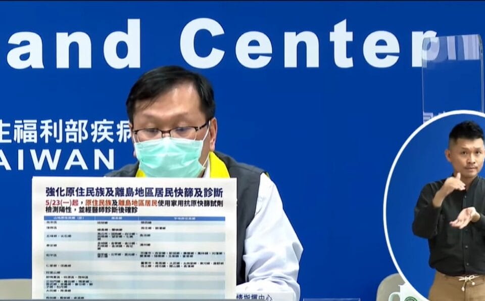 無黨籍立法委員Giwas Ali(高金素梅)說:「反正這個就先開放了,我大概這一兩天,你說偏鄉跟原鄉會先開。」中央流行疫情指揮中心指揮官陳時中回應:「對就先開快篩陽即確診。」