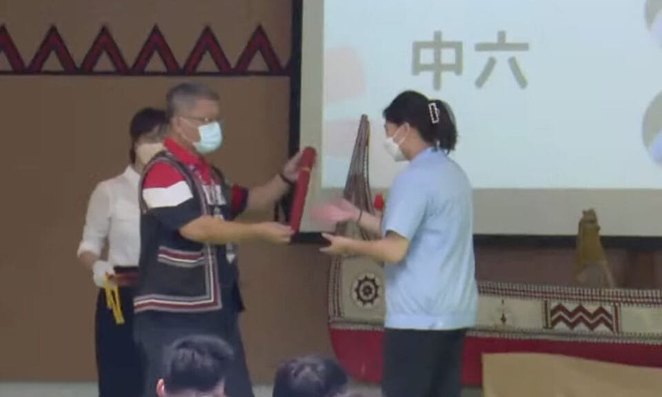 今年蘭嶼高中畢業典禮,日前在蘭中活動中心簡單而慎重舉辦,畢業生穿著傳統服飾從校長手中接下畢業證書,現場只有畢業生跟師長現場祝賀,就是因為要避免群聚感然風險,校方這次分別採實體跟線上畢業典禮模式。
