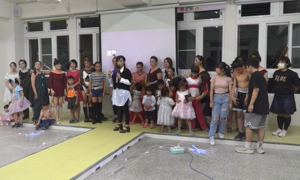 南投部大時尚彩妝進階班,辦理結訓典禮及成果展,伸展台上模特兒身上的彩繪圖紋,在紫光燈照射下,產生的視覺效果令人驚豔,這些都是學員們過去三週來的學習成果,其中也有不少人來自部落藝文團體,希望學到更棒的梳妝與美學技術。