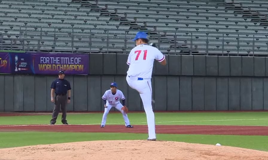 目前還是滿壘局面,輪到韓國隊第9棒,使用強迫取分短打,跑者提前起跑,投手下丘沒處理好,發生致命的失誤,中華隊守備上出現問題,韓國又拿下分數,是非常成功的突擊戰術。先發投手莊昕諺2局上半1個出局數都還沒拿到就掉了3分,換上日本樂天金鷲隊的阿美族王彥程,希望上來能夠化解危機,但目前得點圈上仍然有跑者,2好球後又是短打強迫取分,韓國再次大膽使用戰術,不成功就是出局,表示韓國球員技術的展現,造成在2局上中華隊落後4分。