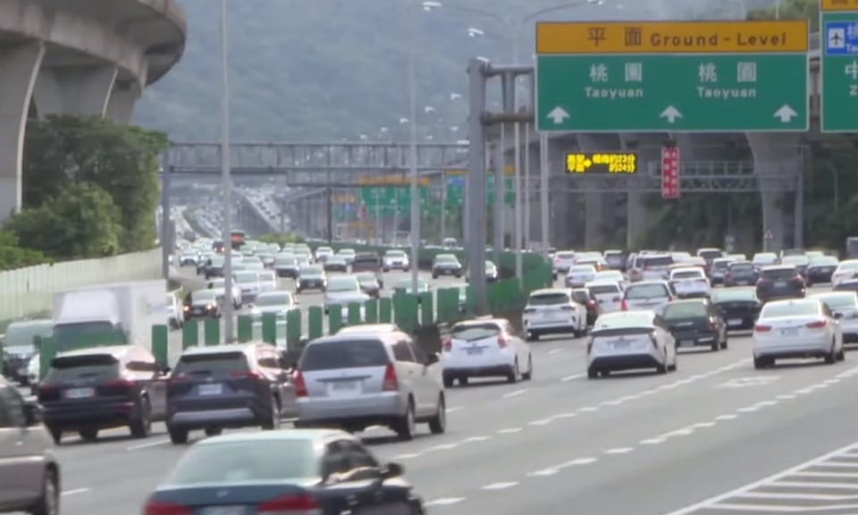 國道路況預報員黃郁凱說明:「首先在截至下午3點為止,我們國道全線交通量56.4百萬車公里,我們預估今天會達到100百萬車公里,與去年同期相比,今天的交通量,大概與去年同期相比,增加了13%左右。」