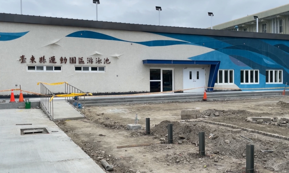 儘管周末假日,工程人員還是馬不停蹄趕工,即將在月底試營運的「台東縣運動園區游泳池」,規劃設有25米方形泳池、兒童戲水池,以及超音波與SPA池等多元設施,不過現在卻傳出道安隱憂。