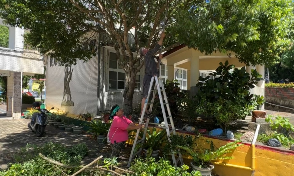 民眾 劉文雄:「做防颱因為颱風愈來愈近了,有些樹枝要砍下來、要修剪。」