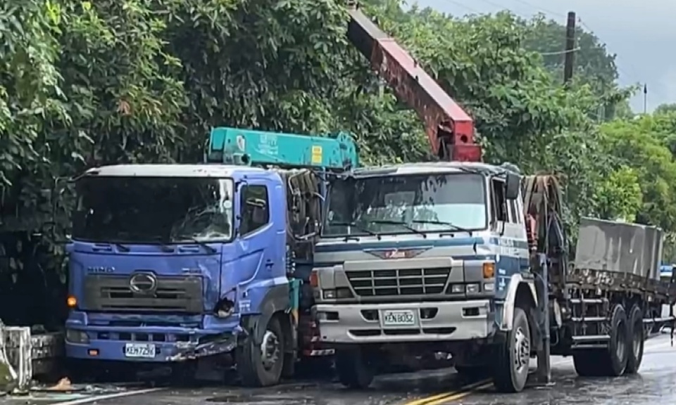消防人員用破壞器材協助受困小貨車駕駛脫困,小貨車駕駛42歲陳男,由北往南方向行經沿山公路185線道30.5公里處,疑天雨路滑失控,撞上對向載有水泥石塊大貨車,小貨車駕駛陳男手臉擦傷、右腳踝骨折,大貨車駕駛46歲楊男未受傷。