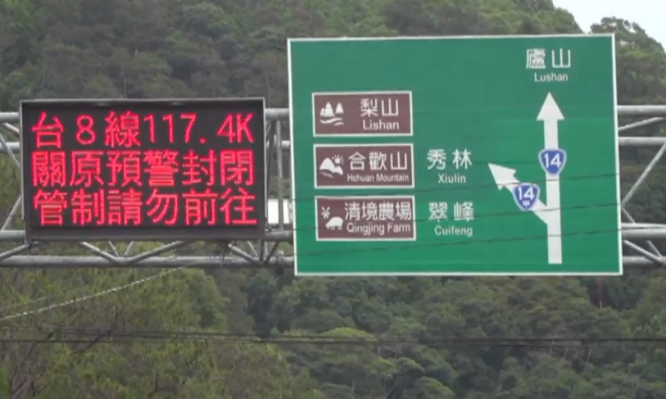 不過在中部地區,台8線通往花蓮117.4K路段,稍早也發生大量土石崩落,可以看到明顯雨勢,挾帶土石滾落,關原路段目前已經在26號下午一點,實施預警性封閉,也將視風雨情形開放通行。而南投縣仁愛鄉,目前在杜蘇芮颱風的外圍環流影響下,鄉公所也不敢輕忽,將災害應變中心,從三級提升到二級,道路搶通相關機具也已經陸續就位,嚴陣以待。