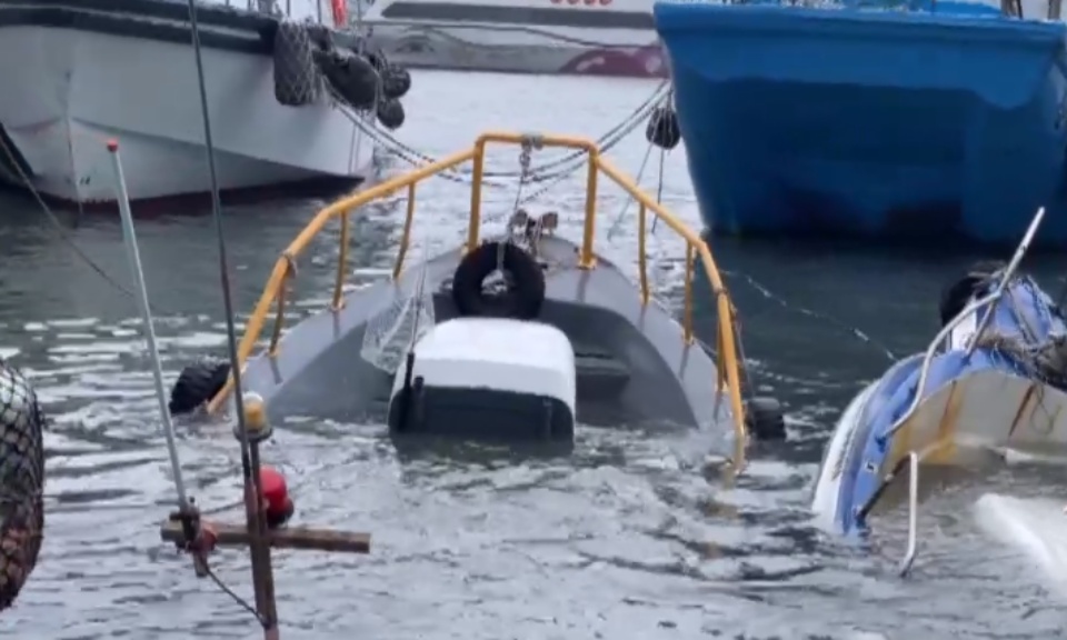 台東區漁會 李振元:「初估研判是昨天晚上的瞬間降雨量過大,漁船積水,所以說重量過重導致它可能下陷,沉下去然後排水機來不及抽水,早上起來的時候漁民才發現。」