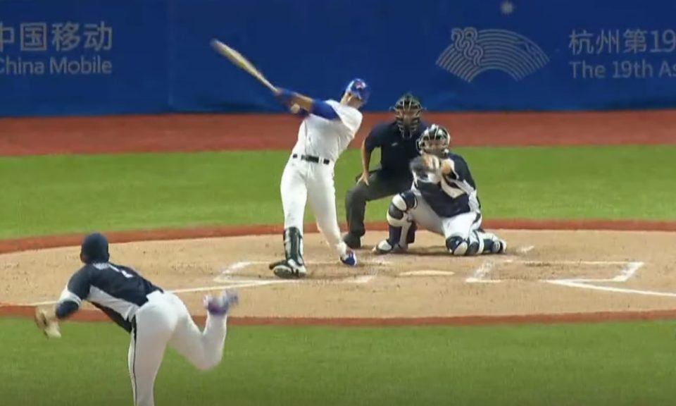 杭州亞運棒球項目關鍵的台韓大對決,中華隊由20歲的旅美左投林昱珉掛帥先發,一局上就投出了霸氣表現,包括讓第二棒的打者吞下一張老K三振;林昱珉很快就先拿到兩個出局數,接著雖然投出保送,但面對第四棒打者,這一球林昱珉自己下丘處理,有效封鎖韓國打線。