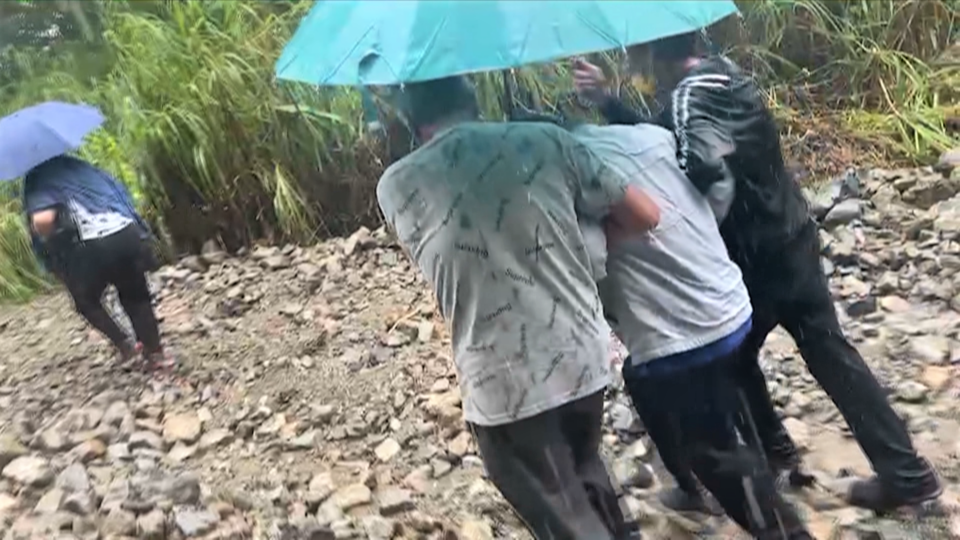 瑞穗鄉鄉長陳進光表示:「0.5K的時候,有大概50公尺的土石流,然後再進去到2.3K的時候,整個路基坍方。」