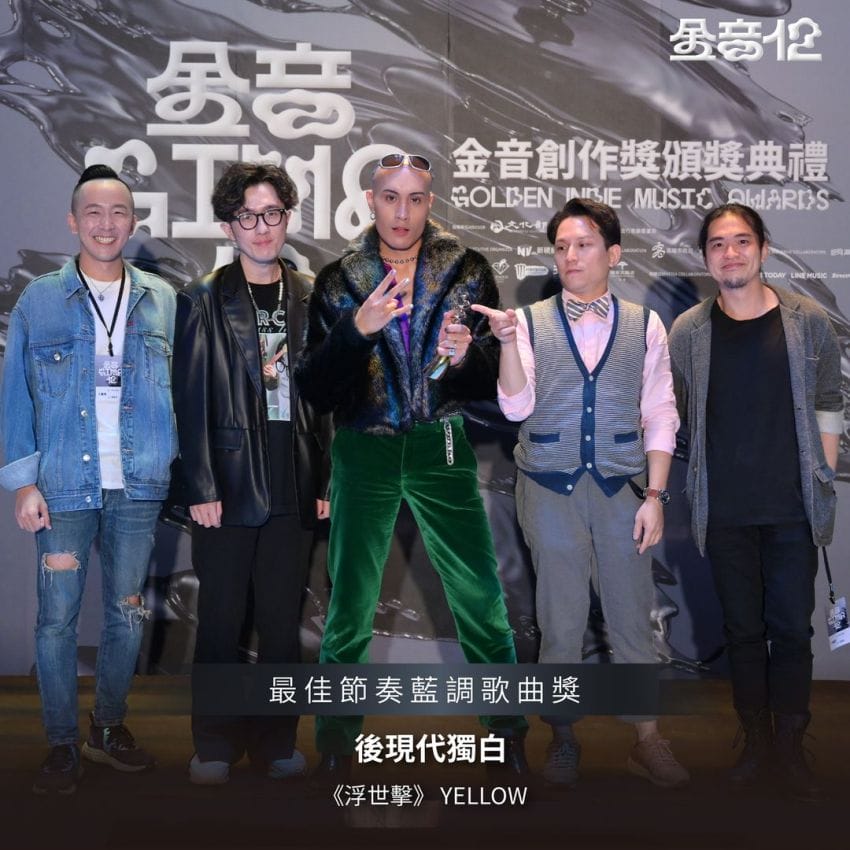 接著說:「如果認識我的人就知道,這幾天我一直保持一個非常興奮的狀態,前年我忘記講一些話,所以我想再次感謝我身後的「唐吉軻德」家族,還有我所有的夥伴們,感謝大家,謝謝金音創作獎,謝謝 GIMA,謝謝你們,謝謝大家,謝謝!This is Yellow!」