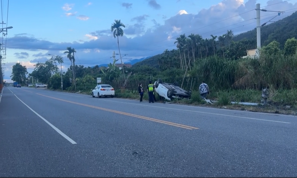 花蓮男子自撞電桿 車體猛烈撞擊翻覆全毀
