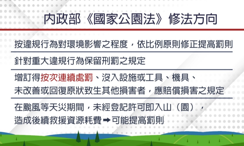 國家公園法立委加重違規罰則 內政部表尊重