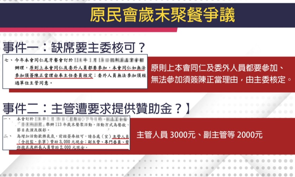 原民會疑強制同仁出席尾牙 要求供贊助金