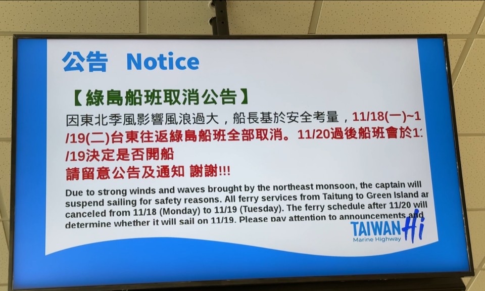 東北季風影響風浪增 綠島、蘭嶼船班停航2天