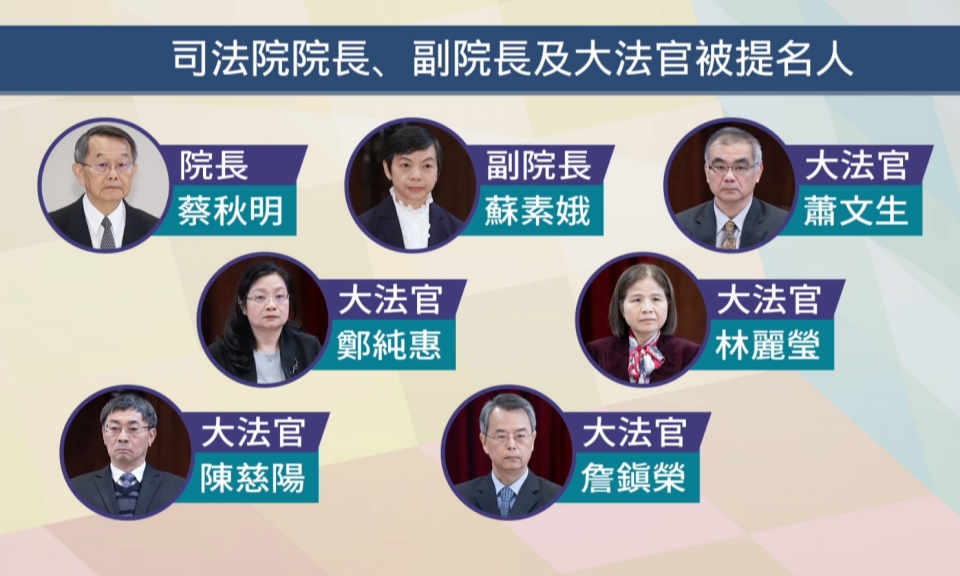 總統府公布 司法院正副院長、5位大法官人選