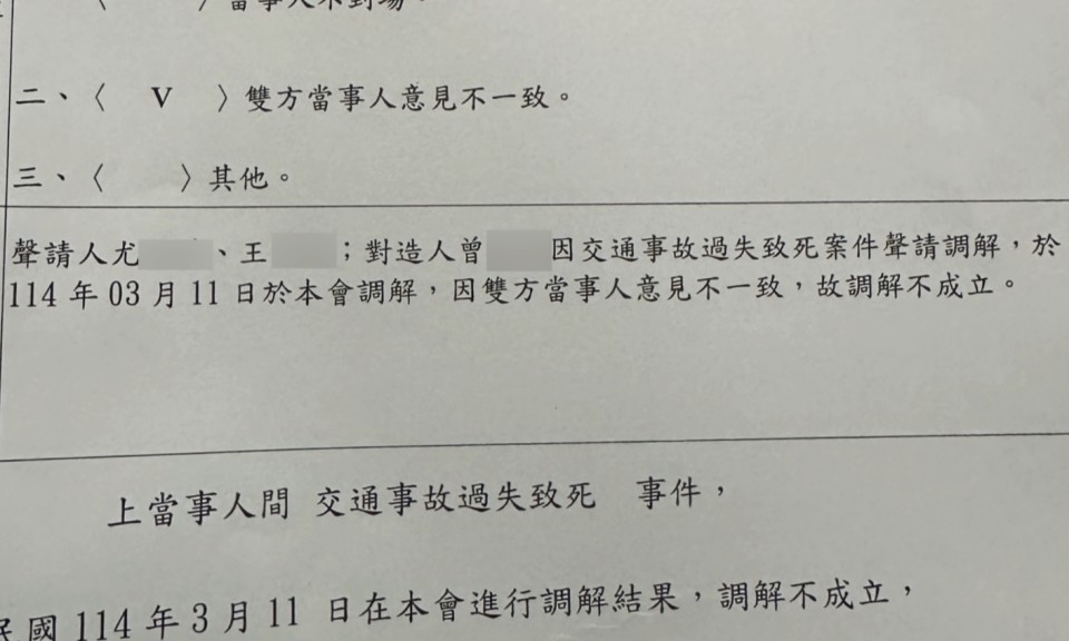 駕駛肇事致死家屬提告 開庭表示願負全責