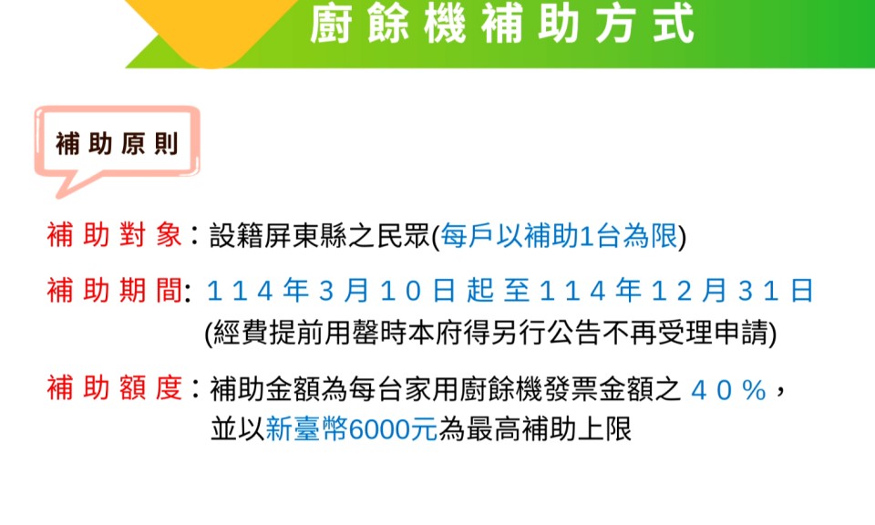 屏東推家用廚餘機補助 家戶一臺最高6千元
