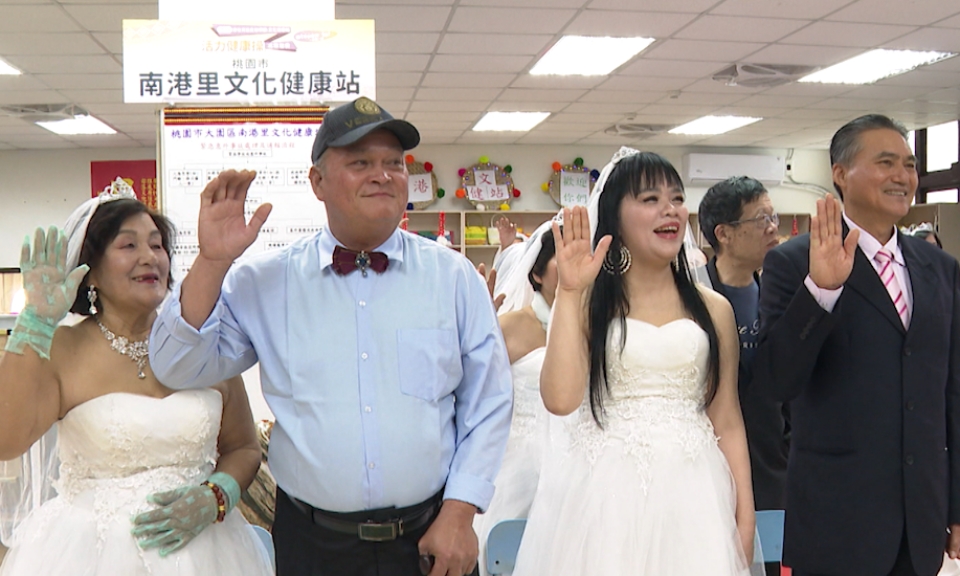 長者雙眼深情對看,手拿象徵永結同心的同心酒,一人各喝一半,再次宣示彼此相愛的心;桃園大園永約文健站及南港里文健 […]