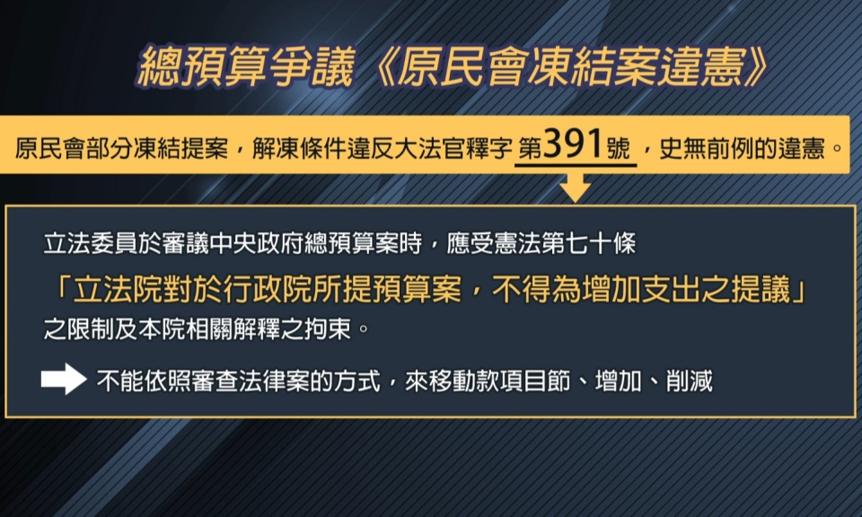 中央總預算案、財劃法 行政院指違法有瑕疵