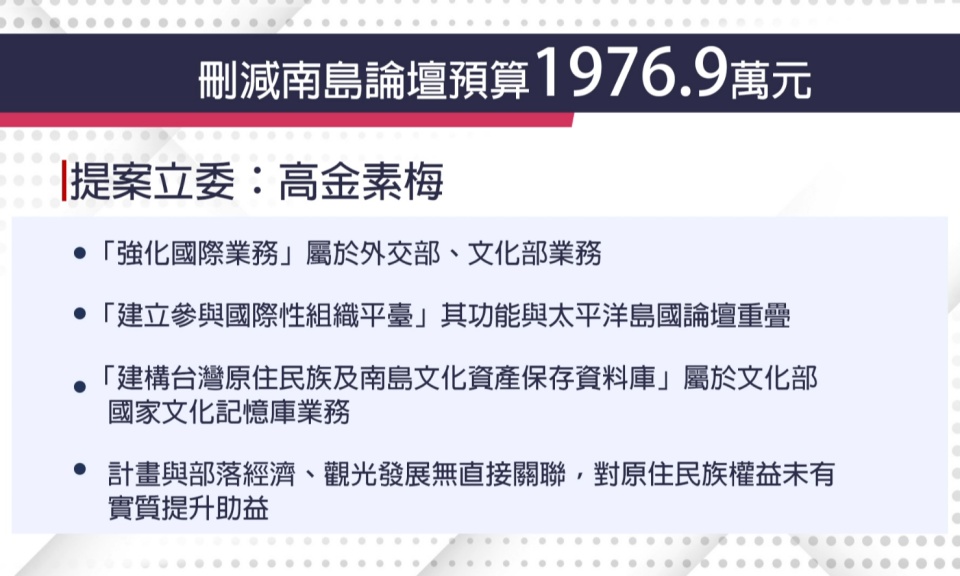 原民會南島論壇預算 遭減列逾1千9百萬元