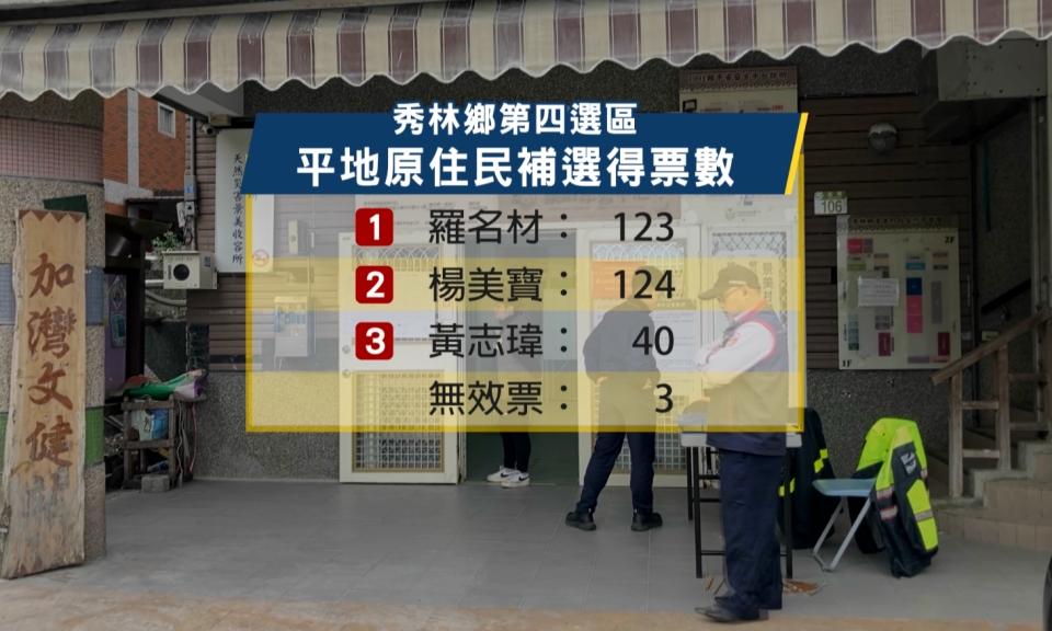 秀林鄉平原代表補選 楊美寶以1票之差勝出