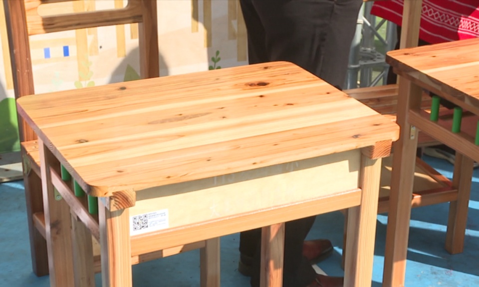 大鹿林道林災木變身課桌椅 供在地學童使用