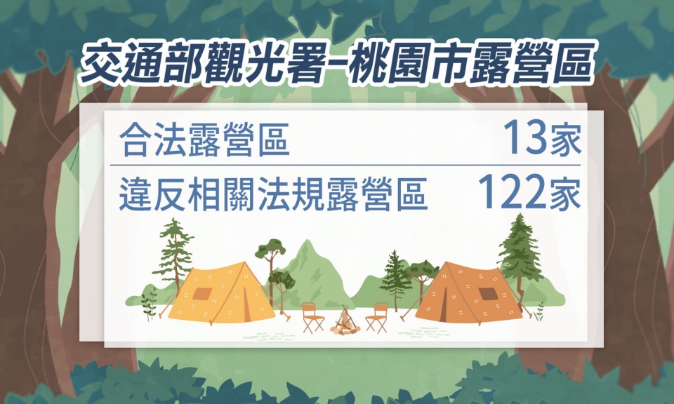 根據「交通部觀光署露營場資料」,我國合法露營區僅占百分之八,而在桃園市,合法露營區僅13家、違反相關法規露營區 […]