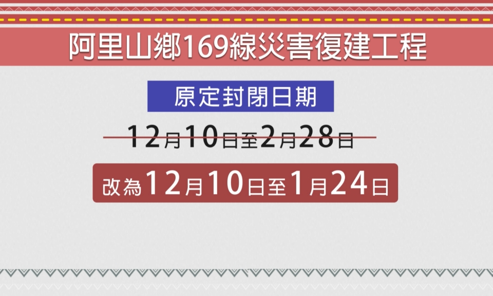 嘉義縣阿里山鄉嘉169線達邦公路因風災受損嚴重,邊坡岩石裸露頻繁掉落,嘉義縣府將進行災害復建工程,原定從12月 […]