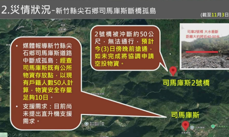 中央災害應變中心消防署代表:「司馬庫斯(2號橋),預計今天(3)傍晚路會搶通;目前糧食都充足,也沒有提出直升機 […]