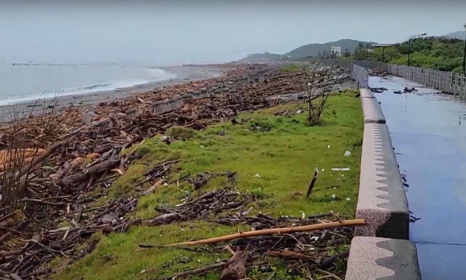 花蓮港東堤牆面受損嚴重 漂流木卡岸邊