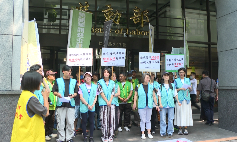 勞團勞動部前集結抗議 要求有薪天災假入法