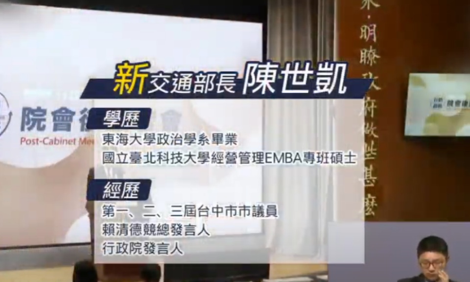 陳世凱接任交通部長 在野黨質疑經驗背景