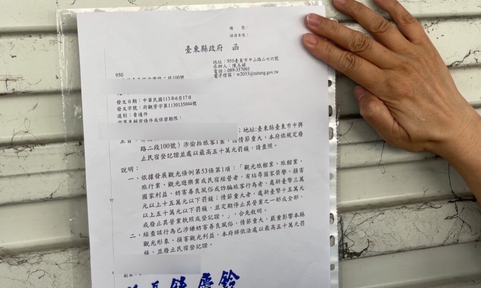 縣府人員大動作到民宿稽查,但敲了半天的門就是無人回應。這間位在台東市的民宿,日前被網友在臉書爆料,表示自己友人 […]